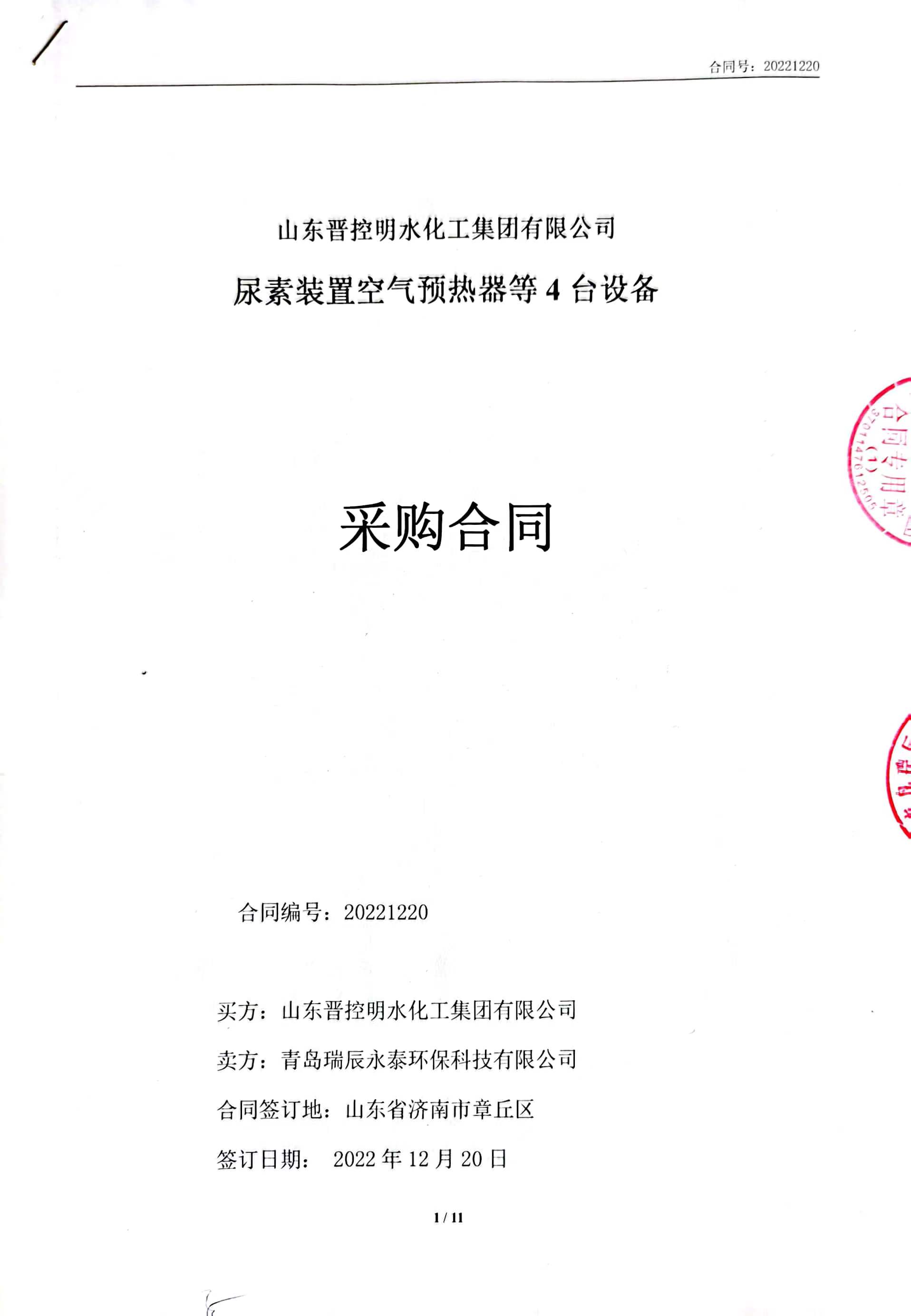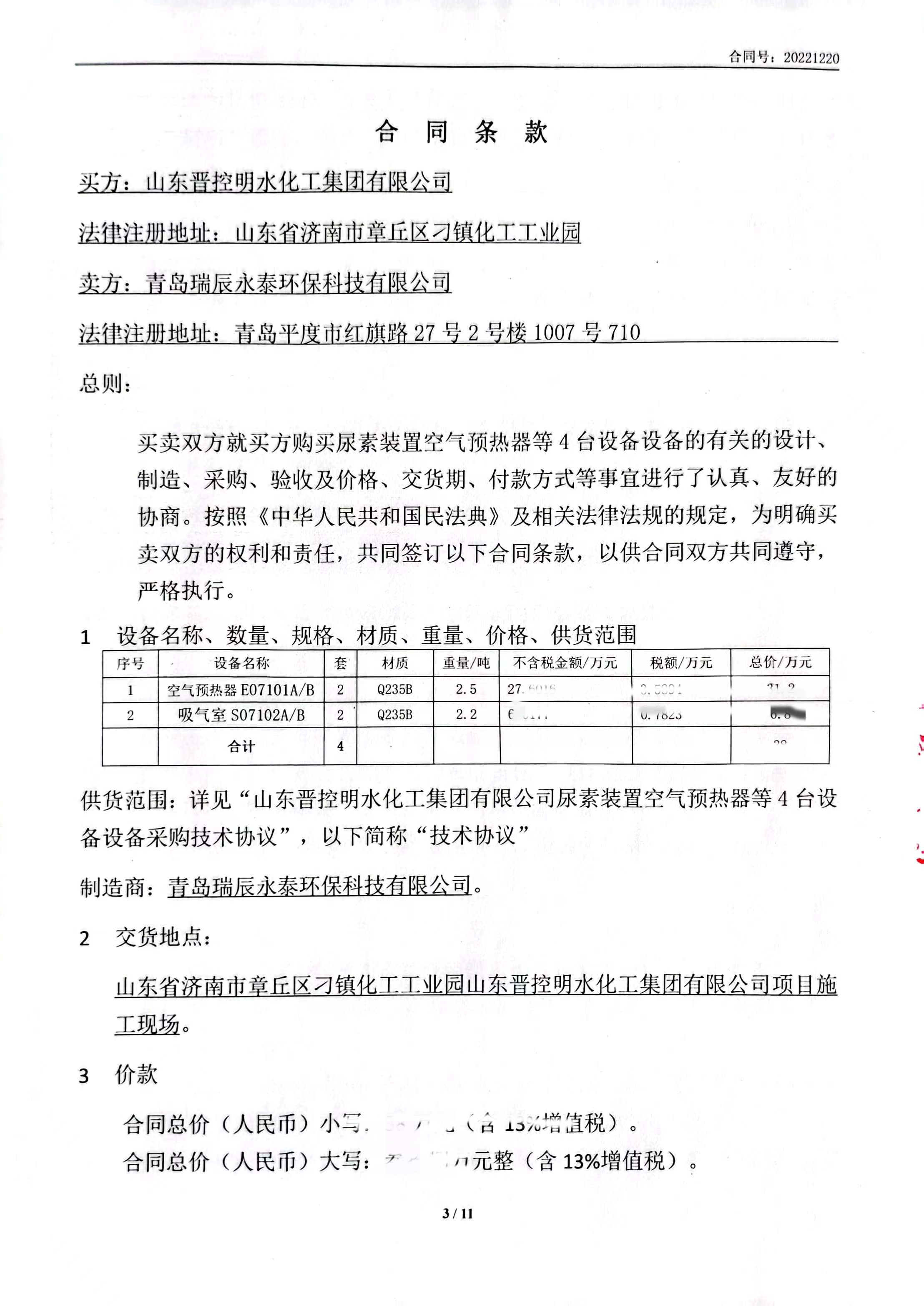和山東晉控明水化工集團簽訂年產(chǎn)20萬噸大顆粒尿素造粒轉(zhuǎn)股設(shè)備及尿素空氣預(yù)熱器裝置。