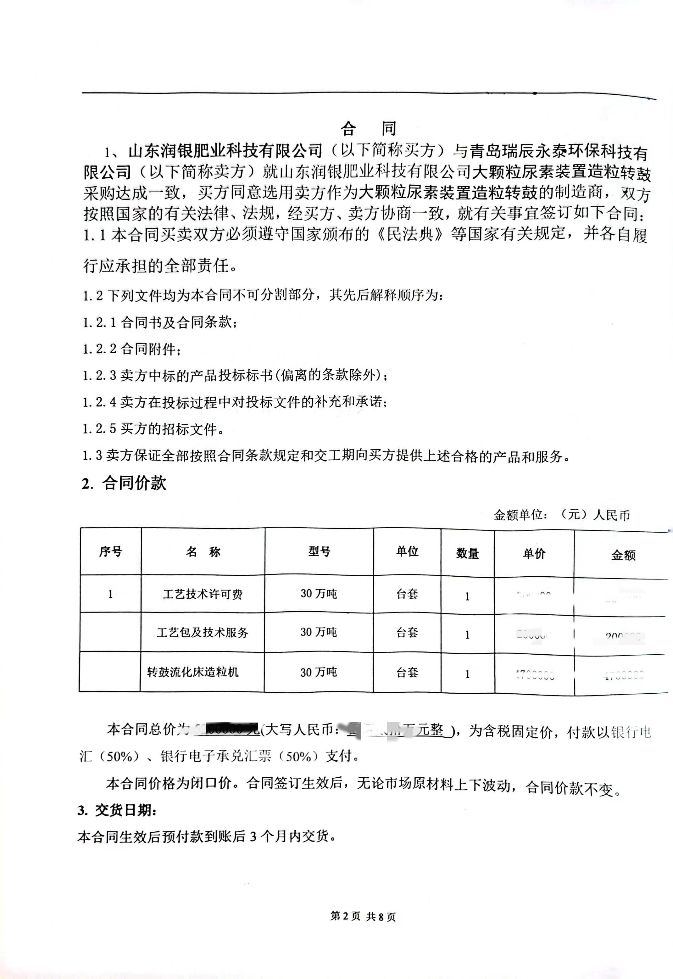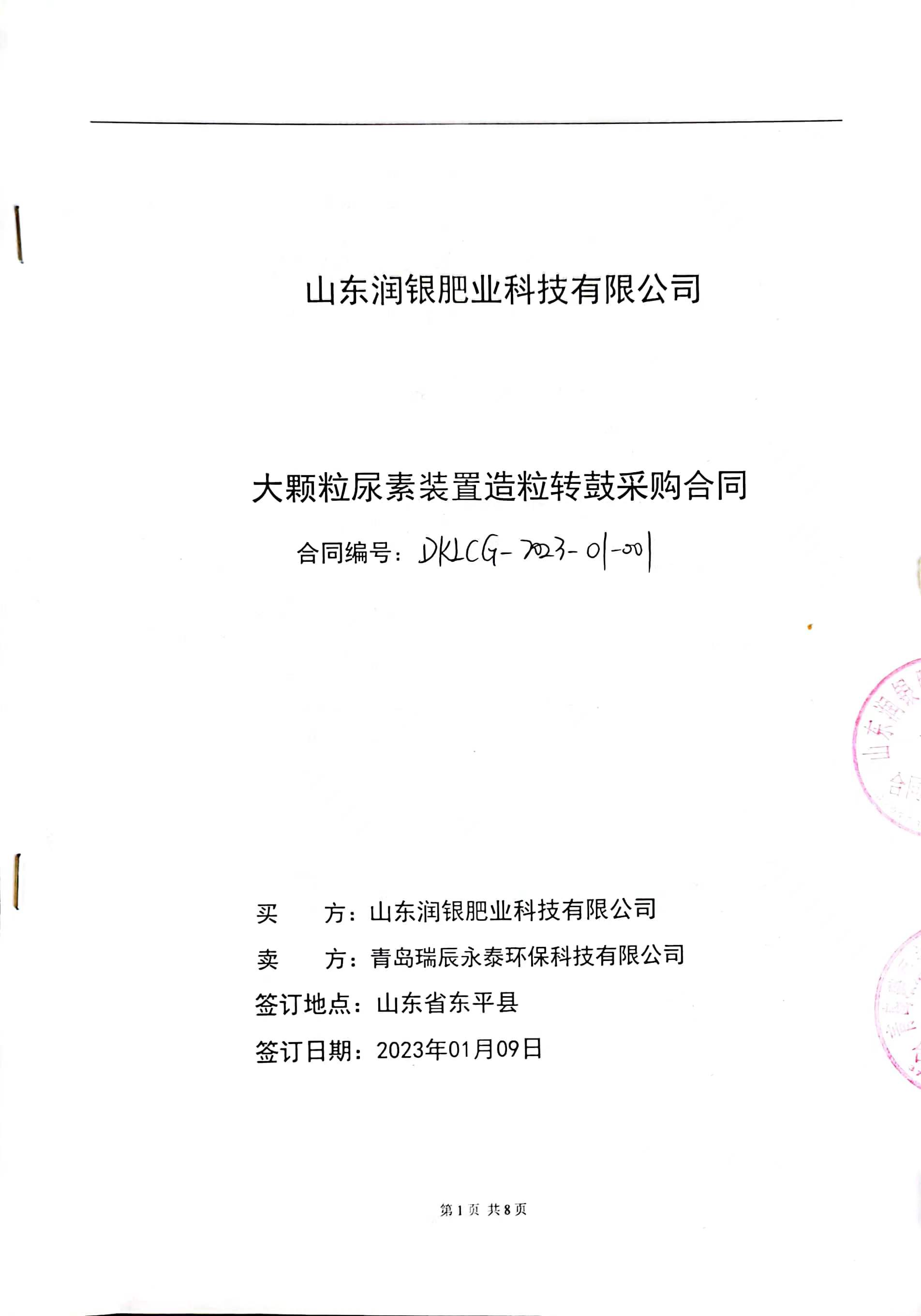 2023年開年伊始,青島瑞辰永泰環(huán)??萍加邢薰居瓉黹_門紅,公司和山東潤銀肥業(yè)有限公司簽訂年產(chǎn)30萬噸大顆粒尿素裝置造粒轉(zhuǎn)股合同。