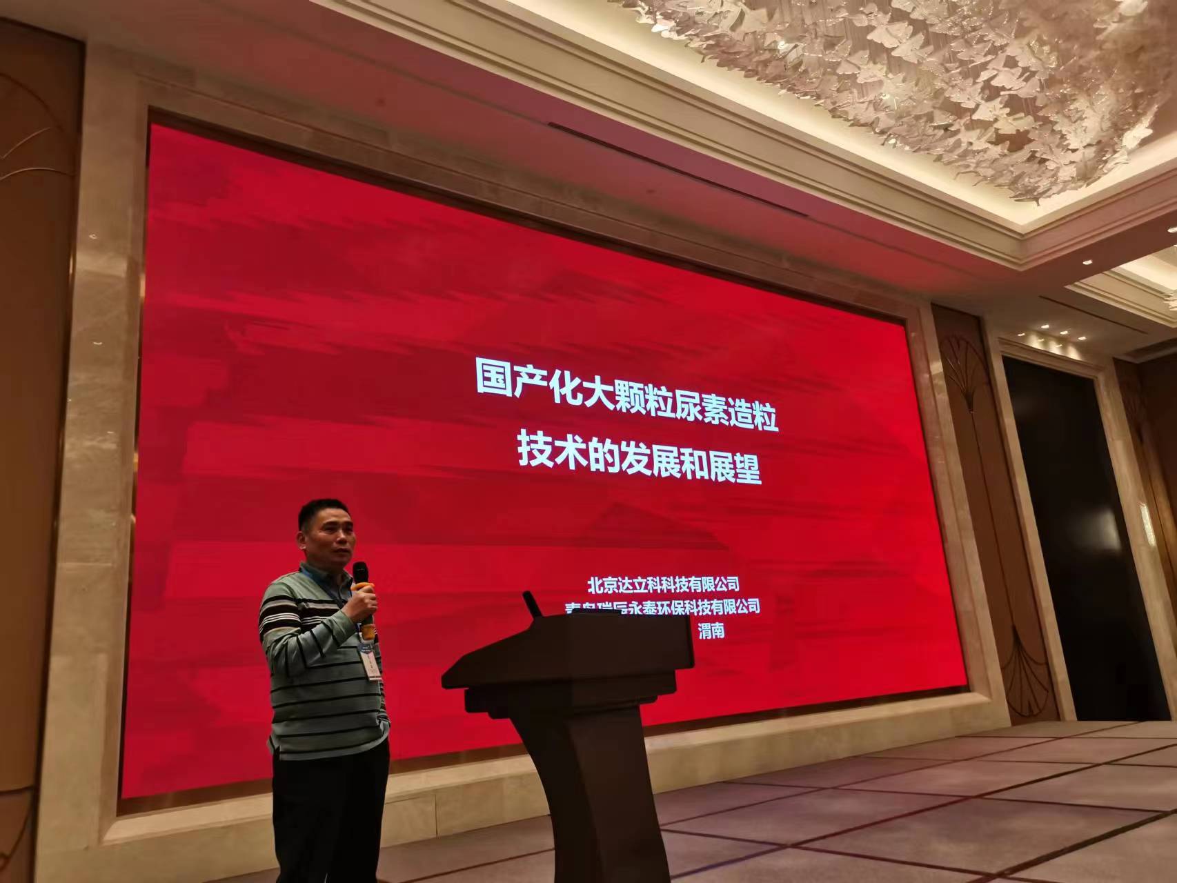 會議上與青島瑞辰永泰環(huán)??萍加邢薰竞献鞯谋本┻_(dá)立科總工程師陳總在會議上做報告,主要是大顆粒尿素與包衣結(jié)合的緩釋尿素在減少化肥用量的同時能夠增產(chǎn)增效。